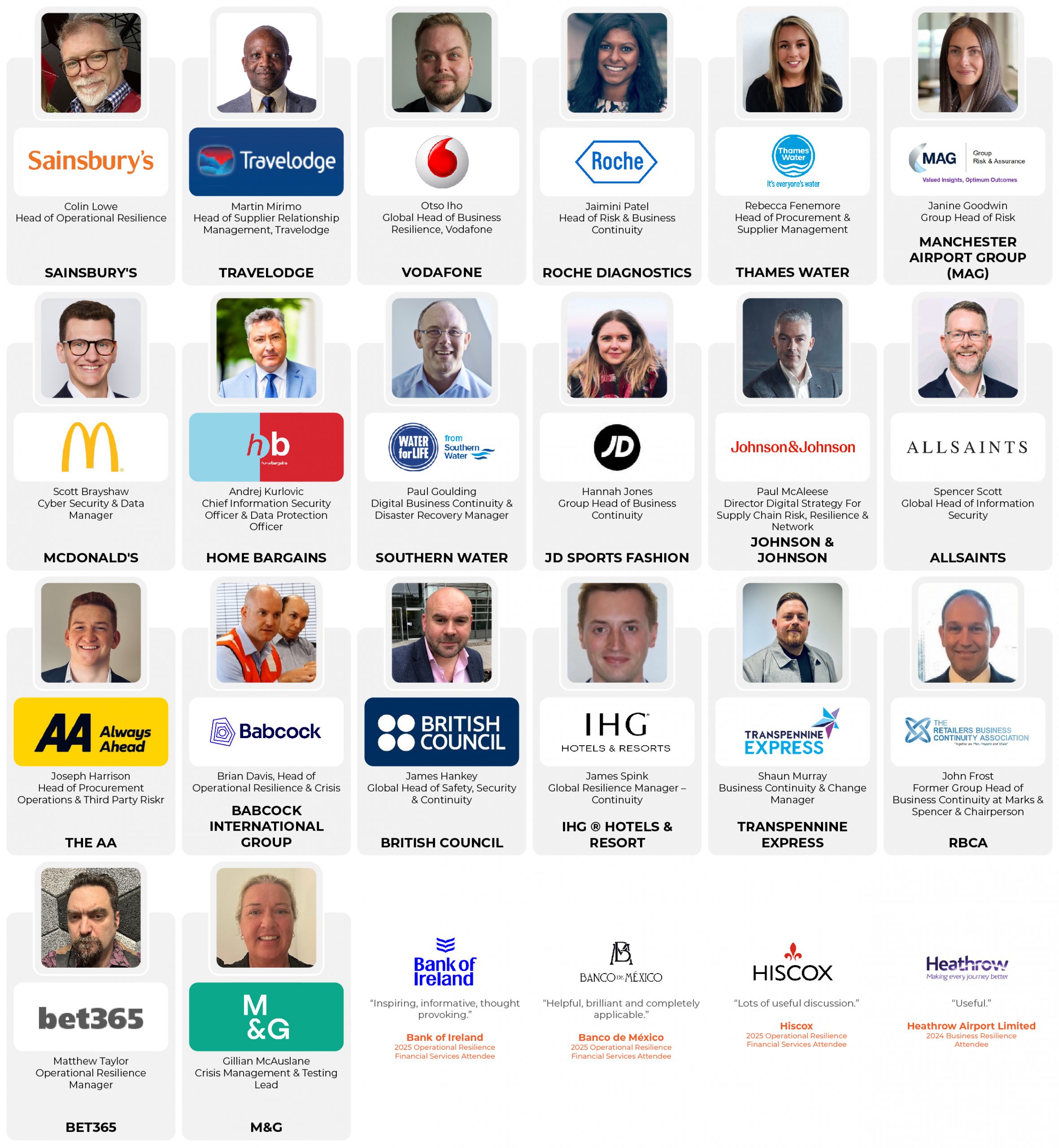- Plus 4 panel discussions giving you the opportunity to ask your burning questions around third party risks, communicating resilience internally, geopolitical risk and future risks.