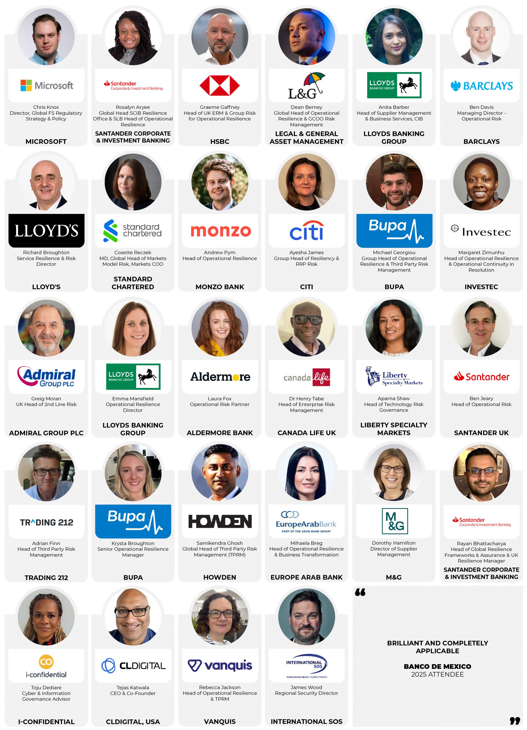 The Operational & Organisational Resilience in Financial Services Conference Is Organised By Global Insight Conferences. Copyright © 2026 Global Insight Conferences Ltd. Registered in England and Wales. Company Number 07295108. Registered Office: 5-11 Lavington Street, London, SE1 0NZ. +44 (0)20 3479 2299.